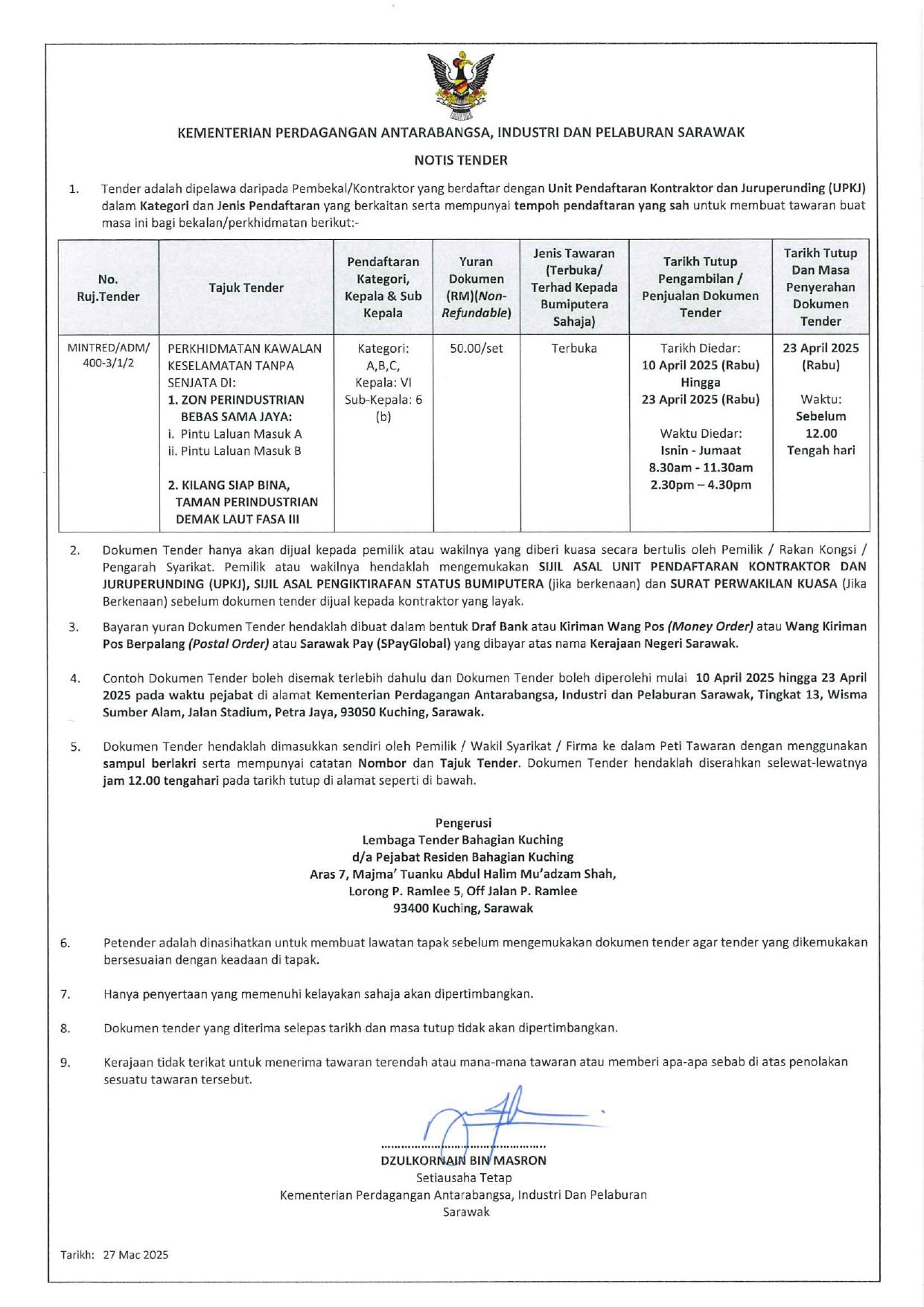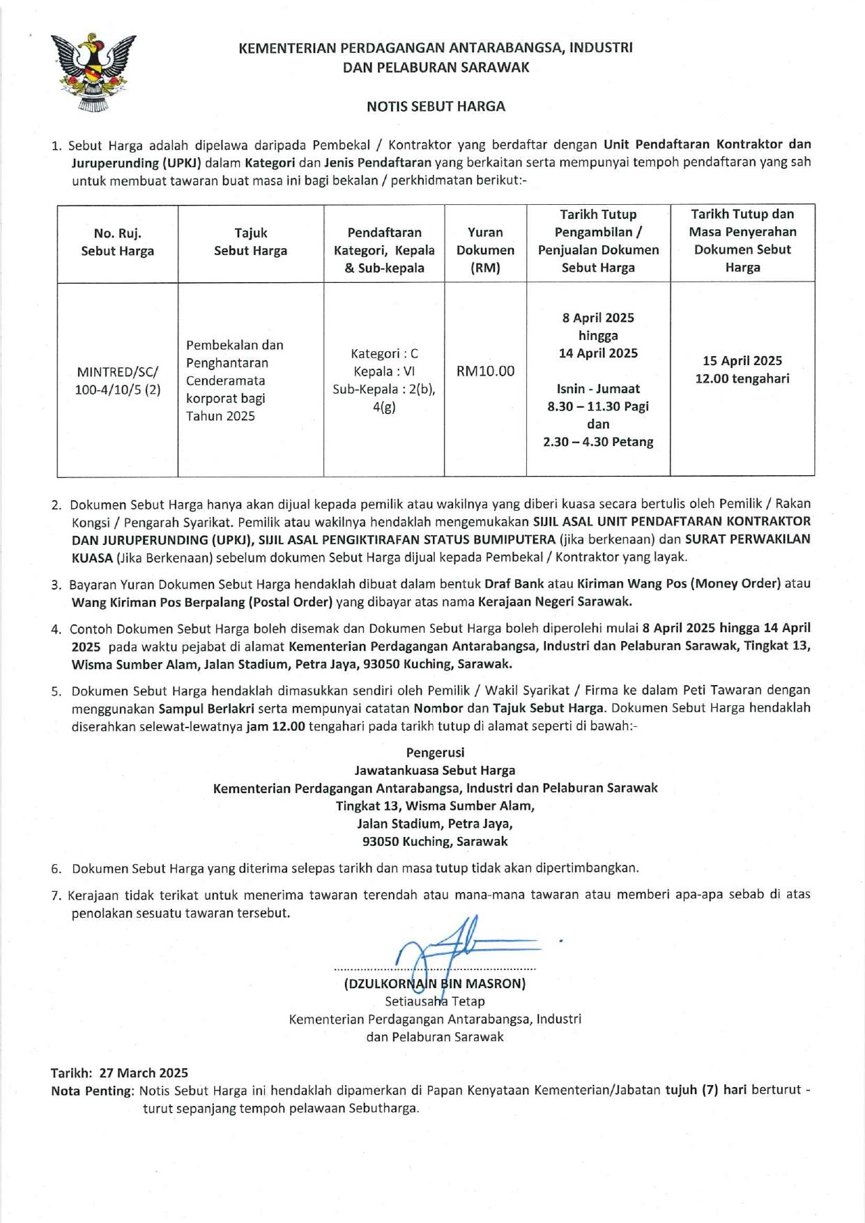 Surat Pekeliling ini adalah bertujuan untuk memaklumkan berkenaan Cadangan Pencalonan Darjah Kebesaran Bintang dan Pngat Kebesaran Negeri Sarawak Tahun 2025